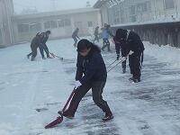 子ども達は、登校時の決まりを守って、元気に登校することができました。また、昼休みには、雪合戦や雪だるまづくりなど、普段なかなか体験できない雪遊びを楽しむ姿が見られました。先生方はみんなで、朝早くから子どもたちの通学時の動線や給食の材料を運搬するトラックの輸送路・校舎北側の雪かきをして、子どもたちの元気な登校に備え準備しました。