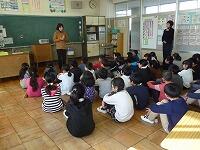 始めに、感謝の気持ちを込めて「レッツゴーソーレー」を笛で演奏しました。続いて、「ビリーブ」の歌のプレゼントをしました。その後、3年2組の子ども達が、一人一人橋本先生との思い出や感謝の言葉を発表しました。最後に、橋本先生から、静小の感想や3年生との思い出などのお話をしていただいた後、全員で感謝の挨拶をしました。
