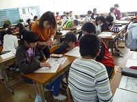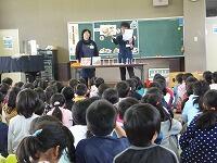 また、4時間目のブックトークでは、低学年児童には、「秋って楽しい!」というテーマで、「まいごのどんぐり、どんぐり銀行は森の中、どんぐりむし、…」など、6冊の本を紹介しながら、どんぐりについてのお話をしてくださいました。子どもたちの素直な反応が微笑ましかったです。高学年児童には、「いもがへんしん!クリの絵本、干し柿、ごはん、…」と、さつまいもやクリ、干し柿など秋の食べ物を題材にした7冊の本を紹介しながら、「秋っておいしい!」というテーマで、お話をしてくださいました。子どもたちは、お話を集中して聞いていました。