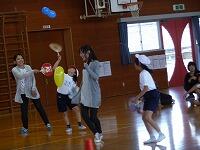 3・4校時は親子レクということで、親子で組んで4つのチームをつくり、親子で協力しながら、玉入れ ・ ボールバウンドリレー ・ 風船あおぎリレー ・ ドッチビーのゲームを行い、楽しい汗を流しました。