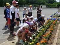 6月12日(月)、先週 岩舟地区の人権擁護委員の皆様からいただきました「人権の花、マリーゴールドと日々草の苗、150本」を、環境委員会の児童と 2年生の有志児童により、学校の花壇に植えました。この後も、環境委員会の児童を中心に、しっかりと水やりをしていきます。