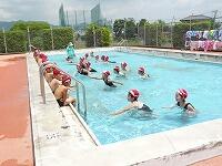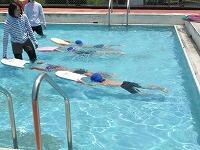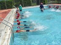 梅雨の合間も可能な限りプールに入り、子どもたちは、一人一人の目標を達成するために意欲的に頑張ります。