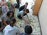 子どもたちが持ってきて集めたペットボトルのキャップを、きれいなものと少し汚れが残っているものに仕分け、洗浄し、乾燥させるまでの作業を行いました。整備部のみなさんが協力しながら、一生懸命作業をしてくださいました。
