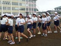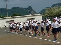 今週水曜日は雨で延期となり、今日も朝は小雨で実施が心配されましたが、子どもたちのやる気が雨雲を蹴散らし、どうにか実施することができました。結果を見ても、最高記録を出した6年1組は、2分間2回分の合計が、男女ともに、何と451回も跳び、同記録で1位となりました。中学年の部では、4年1組男子が332回、低学年の部は2年1組男子が210回と、すばらしい記録を出しました。そして、何より、どのクラスも仲間と協力しながら一生懸命取り組み、学校全体が、「元気で、明るく活力に満ちた学校」となっていました。
