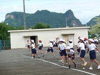 7月、朝の体力づくり ・ ボール投げ頑張ってます!