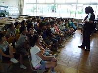 本校では、毎週木曜日、低学年と高学年に分かれて、隔週ごとに読み聞かせを実施しています。今回は、1~3年生が対象でしたが、1年生も身を乗り出すほど興味を持ち、どの学年も集中して聞いていました。
