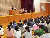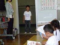 2時間目、1年1組では、道徳の授業「あいさつ」という題材で、礼儀についての学習をしていました。大型テレビをモニターとして利用し、考えるポイントを分かりやすく説明した後、ロールプレーを行いながら、「やさしく、大きな声で、明るく、笑顔で、目を見て・・・」とあいさつのポイントを考えることができました。1年2組は、算数で、時計の見方の勉強をしていました。模型を使って時計の読み方を学習した後は、友だちと問題を出し合いながら、楽しく学習していました。