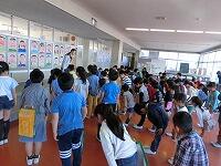 4月17日(月)、担任の先生とALT・ライアン先生とで、本年度2回目の外国語活動の授業が行われました。2時間目は2-1、3時間目は3-1,4時間目は3-2、5時間目は4-1の授業でした。2年生の授業は、「自己紹介をしよう」という内容で、爆弾ゲームや名刺交換ゲームを楽しみながら、英語で、たくさんの友達に、自分の名前を何度も繰り返し紹介していました。