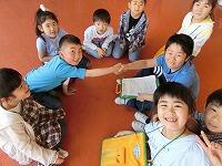 今回は、仲良し班の顔合わせということで、班ごとに自己紹介をしてから集合写真を撮り、その後、校庭で班ごとに楽しくゲームを行って遊びました。