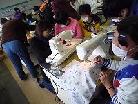 ミシンで端を縫ったり、アイロンでアップリケをつけたりする作業に子どもたちは悪戦苦闘しましたが、ボランティアの方々のおかげで、どの子もきれいに仕上げることができました。