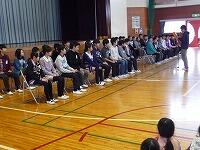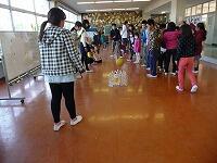 1-1・ 女子 更なる向上目指し優勝学級を全員で 集会を終え 担任と心一つに
