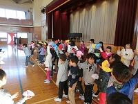 6年生に日ごろの感謝の気持ちを伝えようと、各学年、工夫をこらした出し物や呼びかけを披露しました。会の最後には、6年生と在校生がふれあう時間が設けられ、和気あいあいとした雰囲気が感じられました。