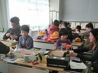6年生の家庭科。エプロン作りをしています。