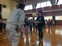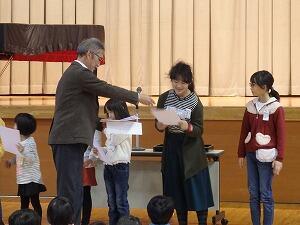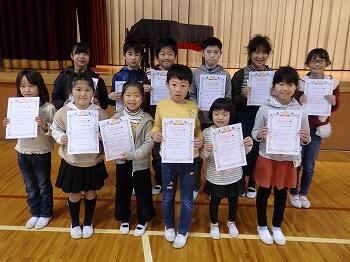校長先生から「あいさつ名人」の賞状をいただきました。