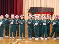 続いて2年生。かわいいサンタたちが「BINGO」と「ジングルベル」の2曲を元気いっぱい歌いました。
