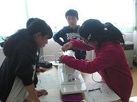 家庭科で、初めてミシンをさわりました。