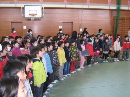 3月12日、セドリック先生(ALT)とのお別れ式を行いました。セドリック先生には、1年間全校生が英語活動の時間に、英語を教わりました。とっても明るい先生で、子どもたちはみんなセドリック先生との英語の授業を楽しみにしていました。またどこかでお会いできる日を、楽しみにしたいです。