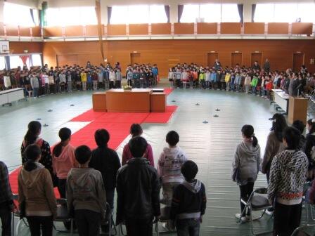 3月7日、全校生で卒業式の練習をしました。本番同様に、椅子を入れての練習でした。6年生の呼びかけは、さすがに上手でした。また、在校生も6年生のために一生懸命に呼びかけの練習をしました。式歌の練習もしました。6年生も在校生も大変よく練習できていました。さらによいものになるよう、卒業式に向けて練習をがんばっていきます。