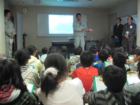 11月7日、岩舟町建設・設備業協議会の方が来校し、建設に関わる学習を実施してくださいました。参加した5年生は、水道水が家庭にとどくまでには、様々な施設を経由してくることなど、興味深く説明を受けました。後半は、約20名の会員の方が、実物の建設機械を紹介してくださり、子とも達の歓声があちらこちらから聞こえました。社会科の学習内容の理解が一層深まり、キャリア教育にもつながる貴重な体験となりました。また、学習後は高所作業車を使った体育館窓清掃など、学習環境整備をしてくださいました。協議会の皆さん、どうもありがとうございました。