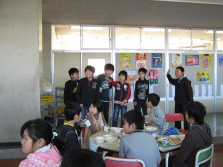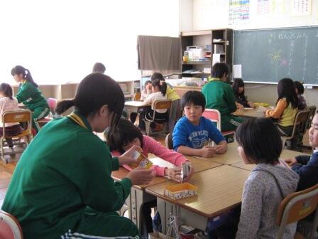 1月28日、給食週間の行事の一つとして、3年生と4年生のふれあい給食が行われました。プレイルームに集まった子どもたちは、楽しそうに会食の時間を過ごしました。