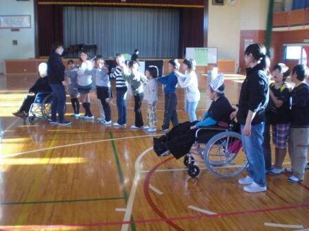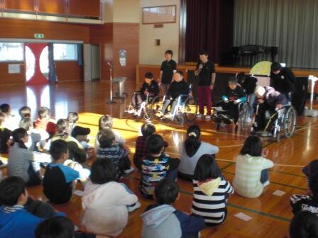 12月5日、4年生は総合学習の一環として、「ひのきの杜」の方々との交流会に参加しました。交流会では、ひのきの杜の施設や車椅子の紹介をしてもらったり、人形劇を見せてもらったり、ゲームを楽しんだりしました。大変貴重な体験をすることができました。この体験は、これからの学校生活の中で、ぜひ生かしていきたいです。