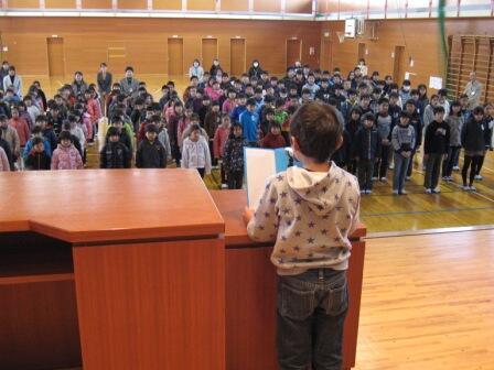 1月8日、第3学期の始業式を行いました。校長先生からは、3学期のめあてについてのお話がありました。詳しくは、静小だよりをご覧ください。また、代表児童の作文発表もありました。2人とも、堂々と作文を読むことができました。
