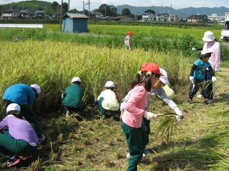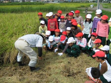 9月10日、3年生は稲刈りに挑戦してきました。静小の観察水田では、5月に田植えをした稲が順調に育ち、収穫の時期を迎えました。田植え同様、永島先生にお世話になり、稲刈りに挑戦することができました。この後は、脱穀、精米をしていただき、白米になる予定です。お米の一部は、静和っ子デーでおにぎりとして販売する予定です。