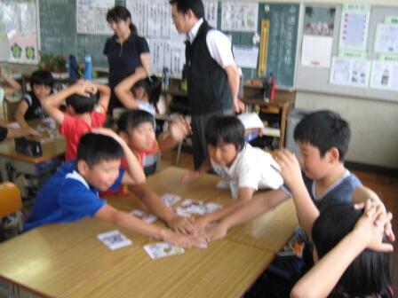 昨年度から、高学年では「英語活動」の時間が始まっています。また、1~4年生では、総合学習の時間や生活科の時間に、ALTと担任による英語の授業が実施されています。歌や、ゲームなどを通して、英語に楽しくふれる時間になっています。