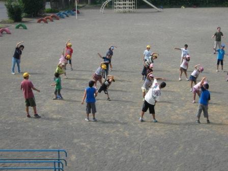 7月23日の学校の様子です。朝は学童に通っている子どもたちが、元気にラジオ体操をしていました。また、体育館では、音楽部の子どもたちが、一生懸命に合奏曲の練習に励んでいました。プールでは、五十畑・曲ヶ島・和泉の子どもたち約80名が、プール活動を楽しんでいました。夏休みに入りましたが、学校では元気な子どもたちの活動が続いています。