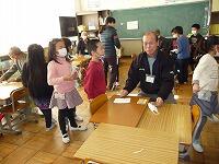 1組、2組、それぞれ6名のボランティアの皆様に入っていただき、子どもたちが一生懸命覚えた九九を聞いていただきました。ボランティアの皆様には、「6の段・コーナー」のように、それぞれ九九のコーナーを担当していただき、合格するとシールを貼ってもらいました。担任一人が見るのとは違って、次々と合格の段を増やし、すべての児童が1~9のすべての段を合格することができました。その後、カードを使って、ランダムに九九の解答を答えるゲームを行いました。子どもたちのやる気も、いつも以上に高まり、楽しみながら意欲的に学習していました。授業の終わりには、お礼に「村祭り」の歌を元気に歌いました。