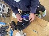 アシストネットボランティアの方々にお越しいただき、ミシンでナップザック作りを行いました。お手伝いいただく2時間でどこまで進められるか不安もありましたが、ボランティアの方々のお力添えで、たくさんの児童がミシンで縫う作業を終えることができました。手縫いを行う箇所では、玉留めや玉結びのやり方を忘れてしまった児童もいましたが、友達同士で教え合いながら、協力し合う姿が見られました。