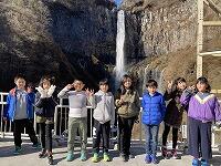 始めに、いろは坂を上って華厳の滝を見学しました。目の前に広がる迫力満点の華厳の滝にみんな大興奮でした。
