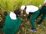 9月6日に、5年生が「総合的な学習の時間」の学習として、稲刈り体験を行いました。