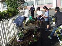花センターから、イノベーション事業の一環として、パンジーの花を、再びたくさんいただきました。そして、11月1日(火) 昼休み、環境委員会の子どもたちが、いただいたパンジーの花を一生懸命、花壇に植えました。