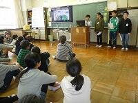 1時間目は、体育館での全体発表ということで、5・6年生の合奏、音楽部による合唱、そして今年度から実施の全校合唱でスタートしました。それぞれの発表とも、練習の成果を発揮し、自信を持って楽しみながら演奏したり、元気に歌ったりしていました。 2・3時間目は、3~6年生は総合的な学習の時間での学習成果の発表会と授業参観を、1年生は生活科・親子でのリース作りを、2年生は音楽発表と生活科・様々な遊びブースの参観を行いました。