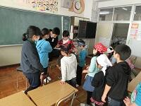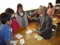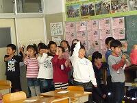1組、2組、それぞれ6名のボランティアの皆様に入っていただき、子どもたちが一生懸命覚えた九九を聞いていただきました。ボランティアの皆様には、「6の段・コーナー」のように、それぞれ九九のコーナーを担当していただき、合格するとシールを貼ってもらいました。担任一人が見るのとは違って、次々と合格の段を増やし、すべての児童が1~9のすべての段を合格することができました。その後、カードを使って、ランダムに九九の解答を答えるゲームを行いました。子どもたちのやる気も、いつも以上に高まり、楽しみながら意欲的に学習していました。授業の終わりには、お礼に「村祭り」の歌を元気に歌いました。
