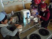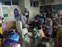 ご飯が炊きあがると、子どもたちは、笑顔一杯で自分の食べるおにぎりをにぎり、おいしそうにおにぎりを食べていました。(はじめておにぎりをにぎった子もいたようです。)