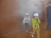 また、消防署の方にお越しいただき、避難訓練の後は、体育館で煙体験を行いました。ミーティングルームは前が見えないほどの煙で、子どもたちは、煙の恐ろしさを実感することができました。