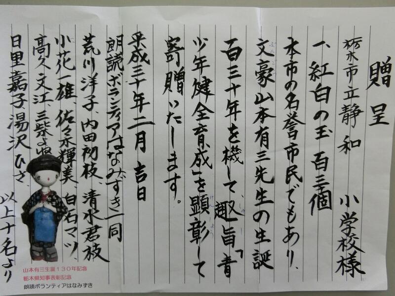 本市の名誉市民「山本有三先生」の生誕130年をきして、趣旨「青少年の健全育成」を顕彰して寄贈されたものです。