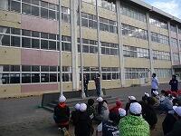 2月16日(金)さわやかタイム終了後、卒業まで約1ヶ月となり、6年生が毎日行ってきた国旗掲揚の仕事を5年生に引き継ぐ、「国旗当番引継ぎ式」が行われました。