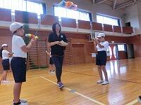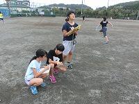 投げ方のコツを教えてもらったあと、再度挑戦。