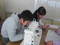 今日は家庭科ボランティアさんとミシンを使ってナップザックを製作する日でした。
