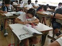 計算問題に集中して取り組む5年生。教室には鉛筆の音が響いていました。
