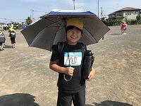 下校時には、黄色い傘を日傘代わりにし、下校しました。