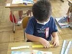 話をよく聞き、色画用紙を切ったり、折ったりしました。