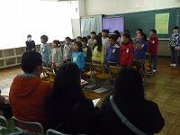 今回は、始めに1年生と4年生の発表がありました。1年生は、「アイアイ」を元気に歌いました。また、4年生は、「アラホーン パイプ」と「ラ クンパルシータ」を木琴と、笛、鍵盤ハーモニカなどで演奏しました。そして、最後に、みんなで「栃木市民の歌」を歌いました。