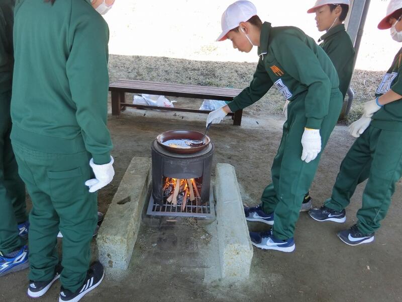 海水を入れて・・・・・ 点火して・・・・・ 丁寧にごみを取って・・・・・ みんなで協力!
