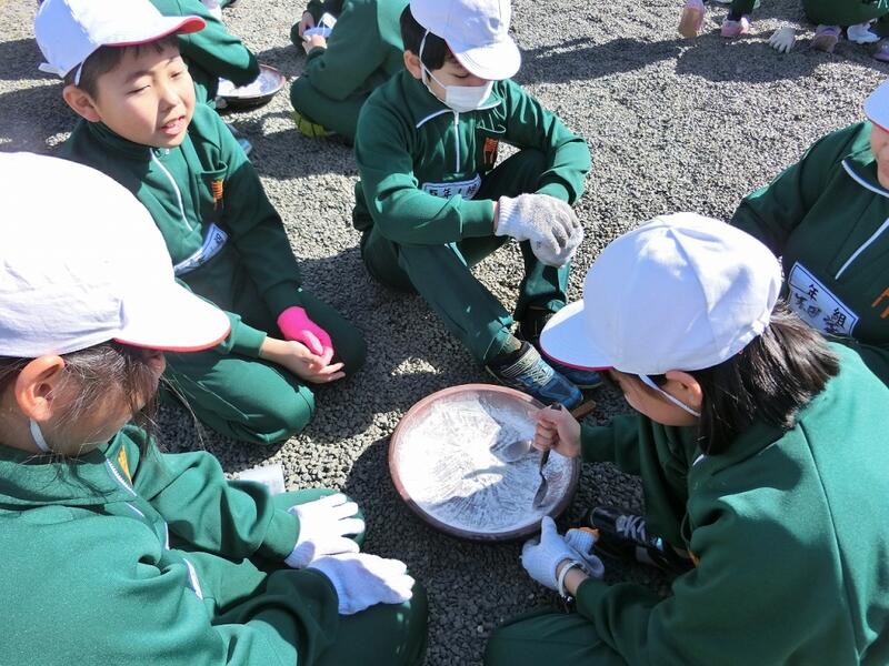 2年生、晴天のグラウンドで外国語活動の授業を楽しむ!