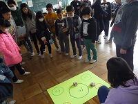 2月20日、2年生は、グラウンドで、学年主任の石川先生、ALT・ロバート先生と外国語活動の授業を行いました。英語と日本語を組み合わせながらオクトパスゲームのルールを説明し、英語で指示をしながらゲームを行うという展開でした。子どもたちは、ゲームを楽しみながら自然な形で英語を聞き、英語に親しんでいました。