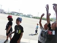 27日(月)、6年生が1年生のシャトルランの手伝いをしました。